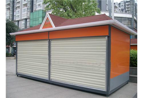 2、售货亭外饰彩钢板喷氟碳漆。
