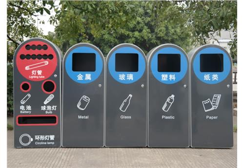 1、铁制五分类垃圾桶身用1.2mm厚,门用1.5mm厚镀锌钢板经激光切割、剪、折、弯等精加工钣金工艺制作成型,表面经静电喷涂专用户外粉高温烘烤而成。