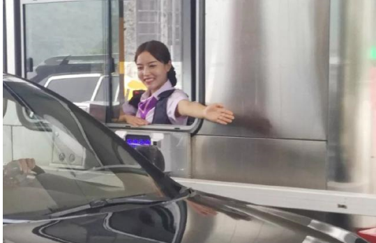 温暖提示: 广大司机朋友请注意,围观时要注意保持车距,不要被小姐姐的笑容迷住,蹭到小姐姐座骑-宝华收费亭哦。